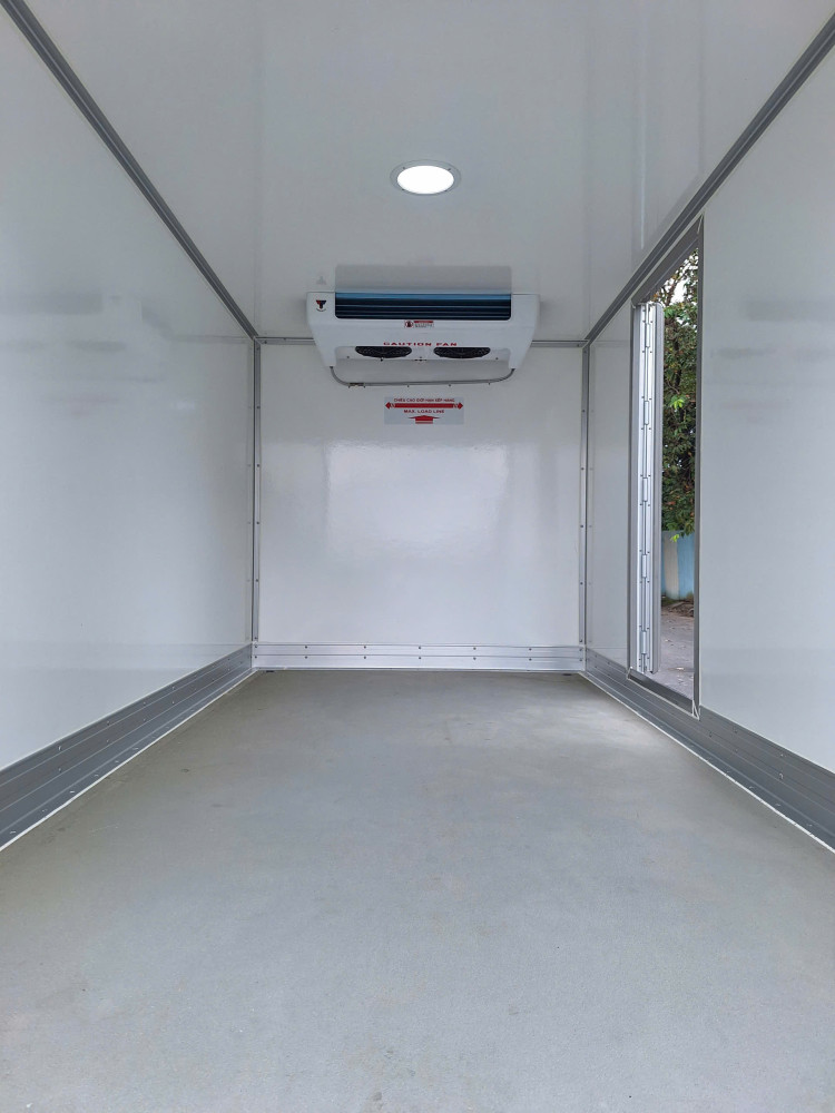 Một số khách hàng lại có nhu cầu vận chuyển hai hoặc nhiều loại mặt hàng bảo quản ở nhiều mức nhiệt khác nhau thì có giải pháp làm thêm vách ngăn di động trong thùng tạo thành 2 khoang chứa hàng với 2 mức nhiệt khác nhau. Ví dụ hàng đông lạnh như thịt, cá, kem, hàng đã cấp đông,... thì mình để ở ngăn chứa phí trước thùng nơi có máy lạnh thổi hơi lạnh ra trực tiếp cho nhiệt độ thấp giữ hàng không bị rã đông, giảm phẩm chất, hư hỏng. các mặt hàng nông sản như ra, củ, quả thì mình để ngăn sau nơi chỉ cần giữ mát là đủ.